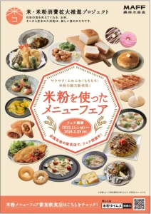 2023年11月1日(水)から2024年2月29日(木)の期間限定で「米粉を使ったメニューフェア」が開催されます!
