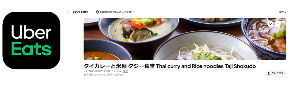 タイカレーと米麺「タジー食堂」のUber Eatsはこちら!